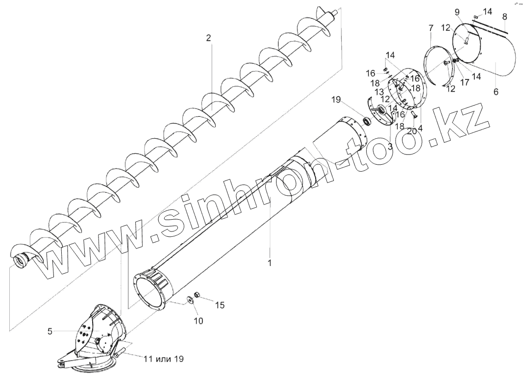 Каталог запасных частей к технике: Гомсельмаш КЗС-10К Палессе GS10. Шнек с отводом КЗК-12-0206000Б