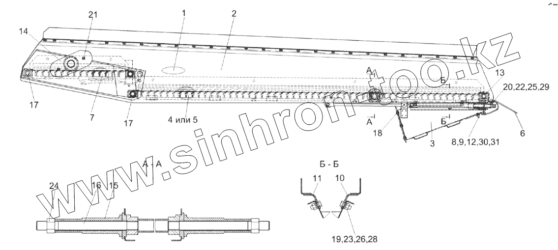 Каталог запасных частей к технике: Гомсельмаш КЗС-10К Палессе GS10. Стан решетный верхний КЗК-10-0260000
