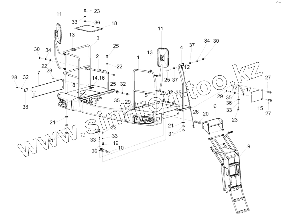 Каталог запасных частей к технике: Гомсельмаш КЗС-10К Палессе GS10. Установка площадок КЗК-10-3-0121000