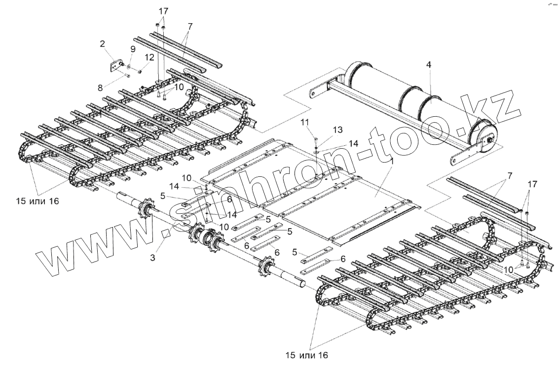 Каталог запасных частей к технике: Гомсельмаш КЗС-10К Палессе GS10. Установка транспортеров КЗК-12-1817000В