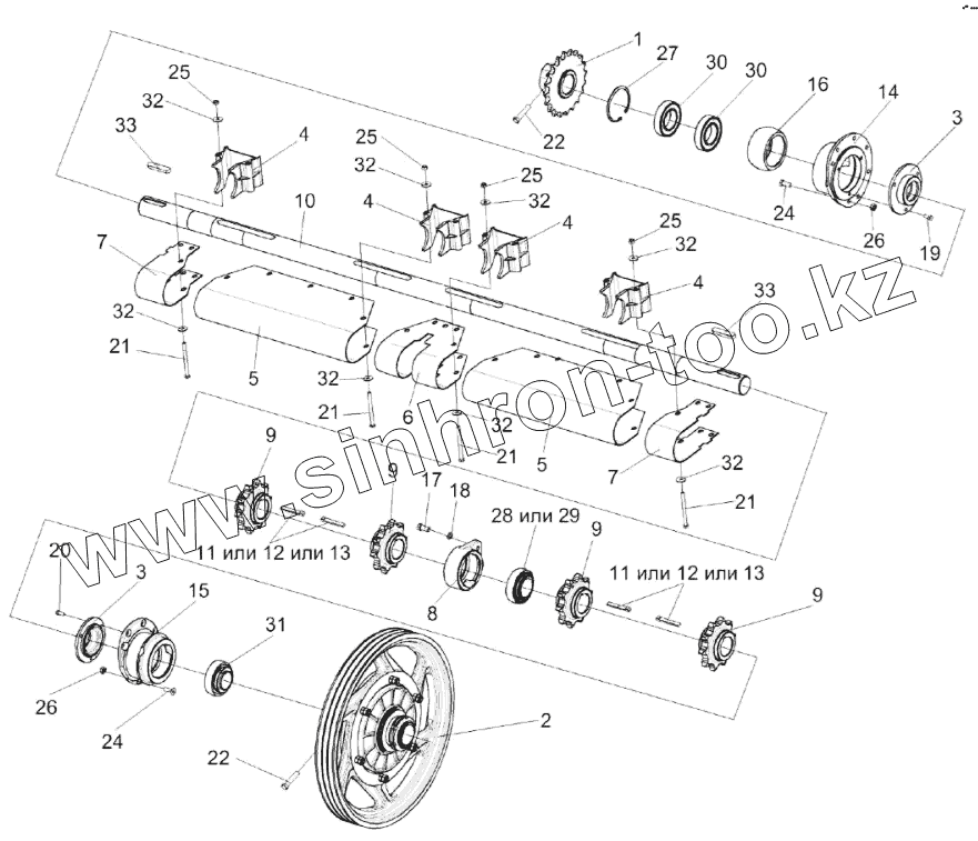 Каталог запасных частей к технике: Гомсельмаш КЗС-10К Палессе GS10. Установка вала верхнего КЗК-12-1813000Б