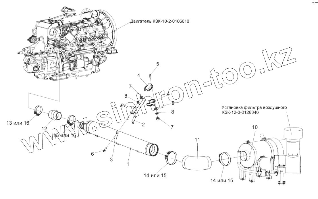 Каталог запасных частей к технике: Гомсельмаш КЗС-10К Палессе GS10. Установка воздухоочистителя КЗК-10-2-0106080