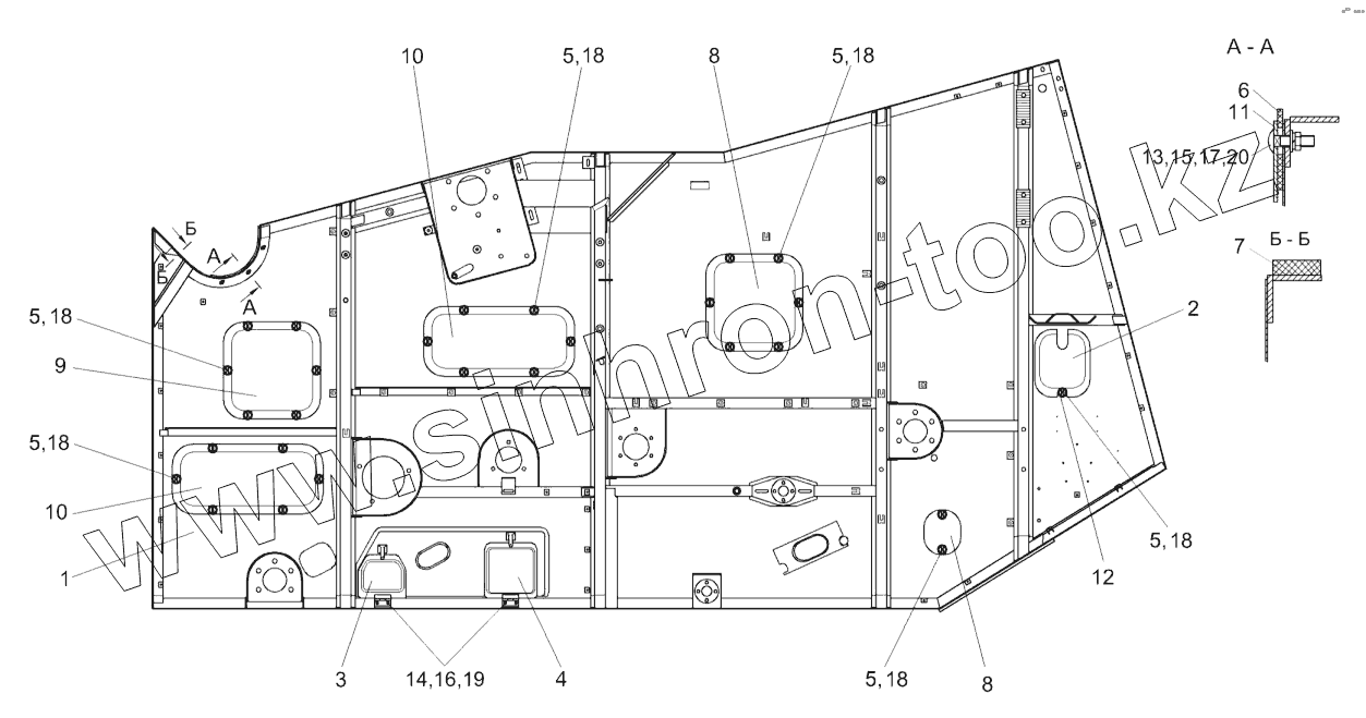 Каталог запасных частей к технике: Гомсельмаш КЗС-10К Палессе GS10. Боковина левая КЗК-10-0202030-01