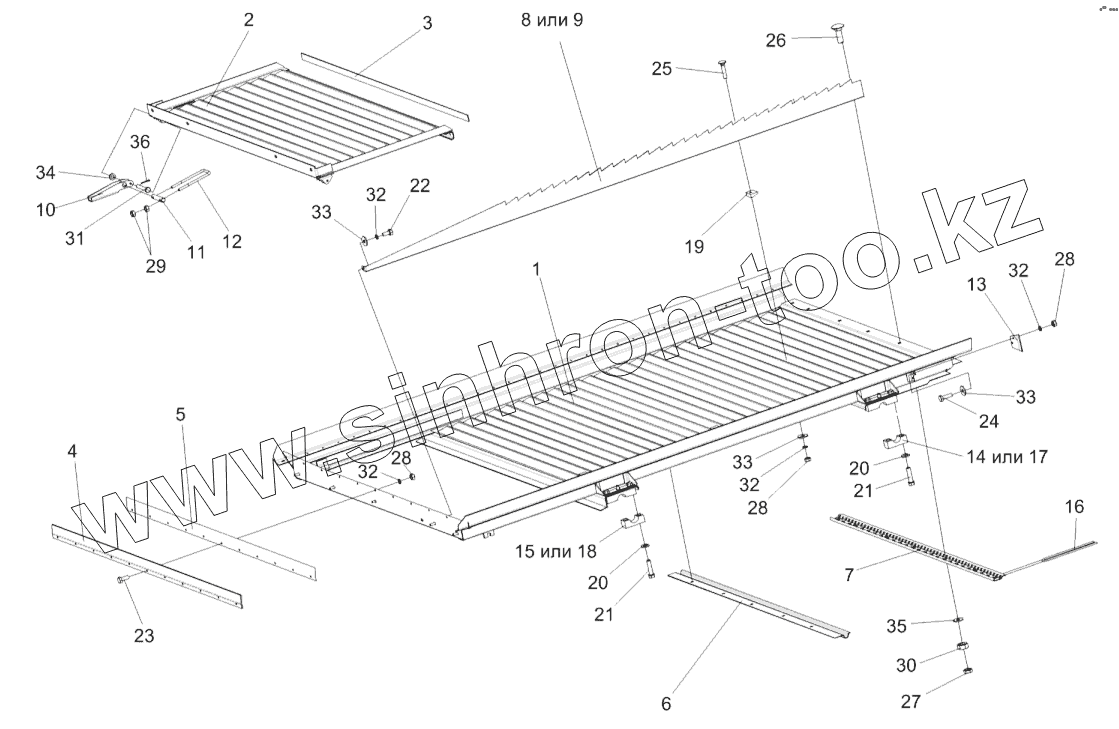 Каталог запасных частей к технике: Гомсельмаш КЗС-10К Палессе GS10. Доска стрясная КЗК-10-0280000