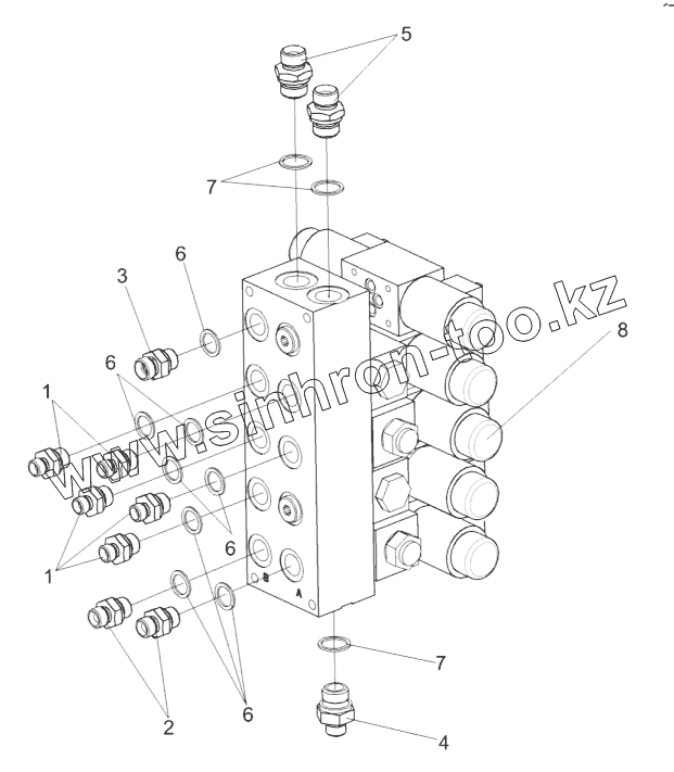 Каталог запасных частей к технике: Гомсельмаш КЗС-10К Палессе GS10. Гидроблок пятисекционный КЗК-10-1-0602300А