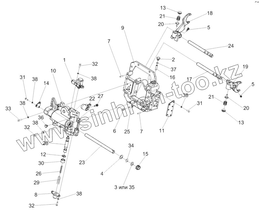 Каталог запасных частей к технике: Гомсельмаш КЗС-10К Палессе GS10. Механизм переключения диапазонов 3518020-46160