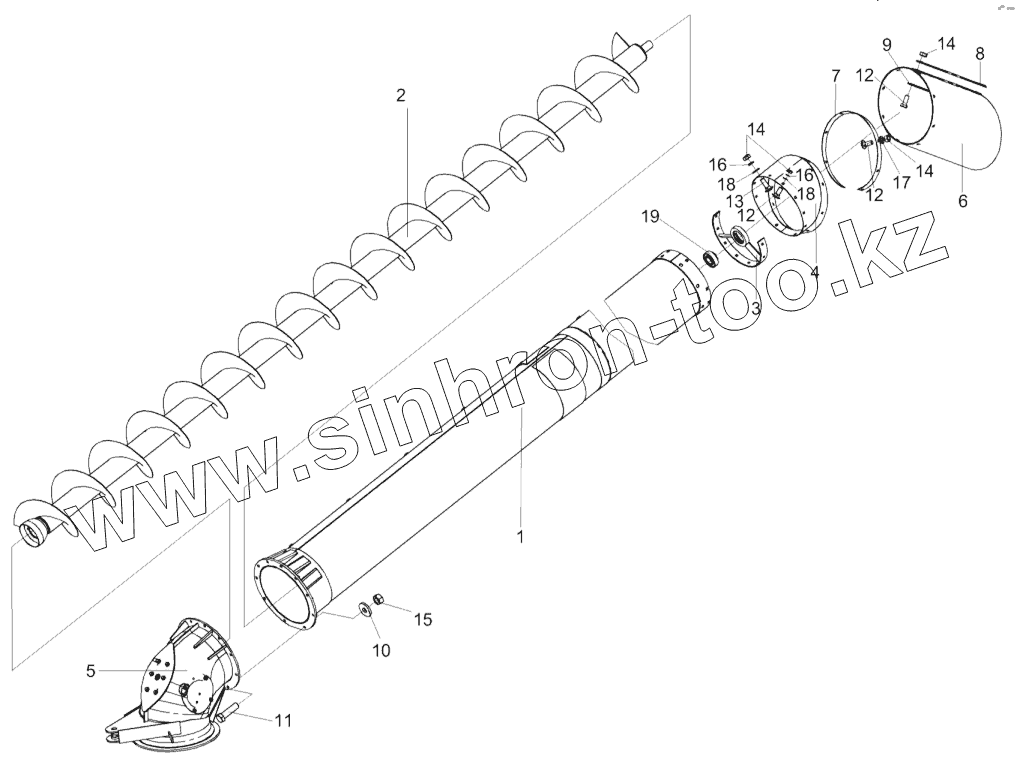 Каталог запасных частей к технике: Гомсельмаш КЗС-10К Палессе GS10. Шнек с отводом КЗК-12-0206000А