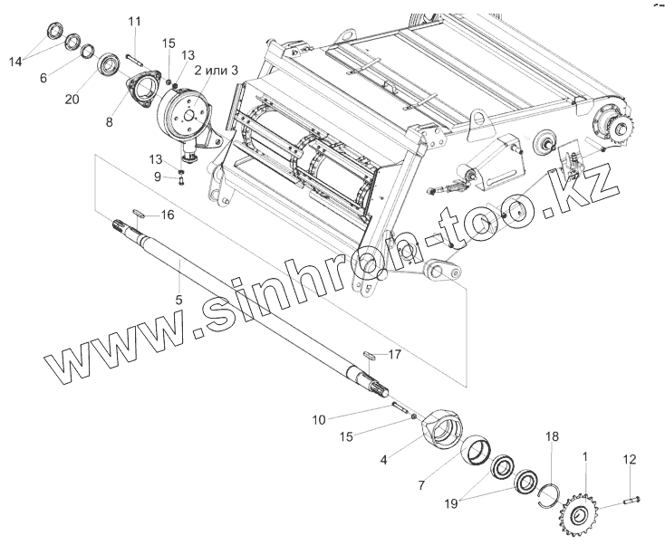 Каталог запасных частей к технике: Гомсельмаш КЗС-10К Палессе GS10. Установка вала КЗК 1870605 камеры наклонной
