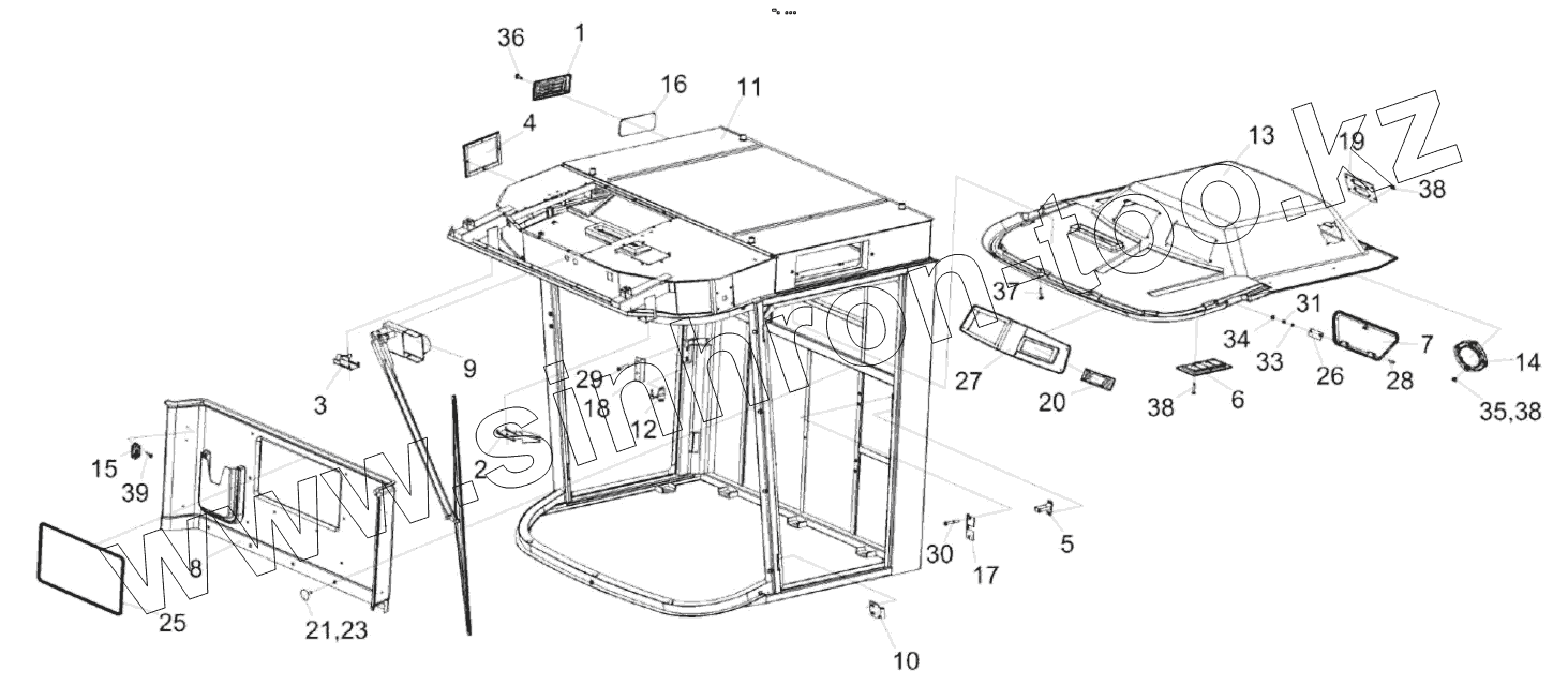 Каталог запасных частей к технике: Гомсельмаш КЗС-10К Палессе GS10. Кабина КЗК-3219-0120010