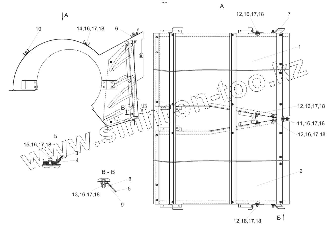 Каталог запасных частей к технике: Гомсельмаш КЗС-10К Палессе GS10. Кожух сдвоенный КЗК-10-0217100
