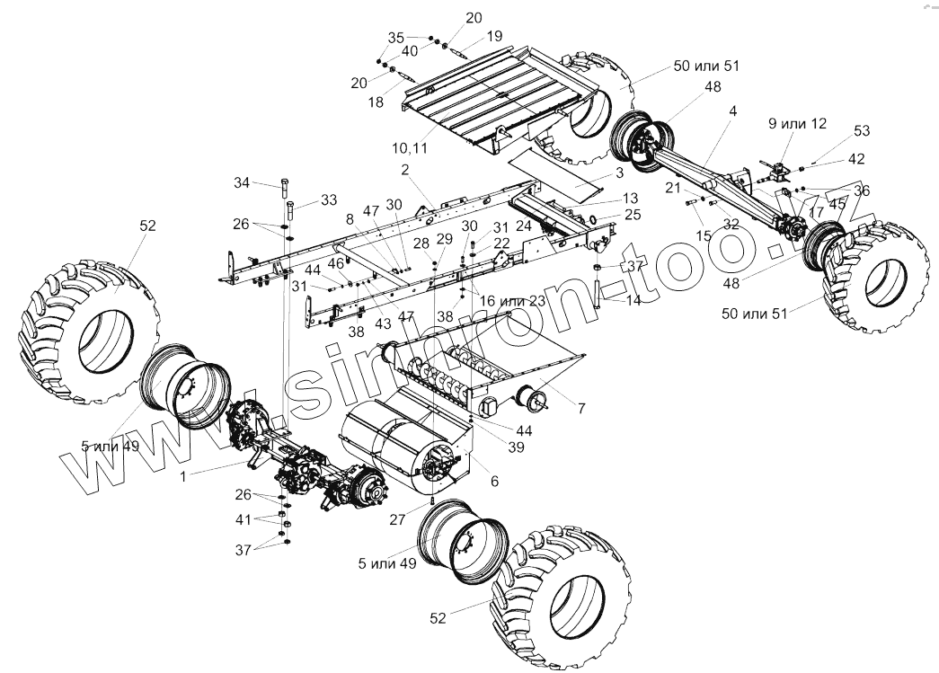 Каталог запасных частей к технике: Гомсельмаш КЗС-1218 часть 1. Шасси КЗК-12-0111000В