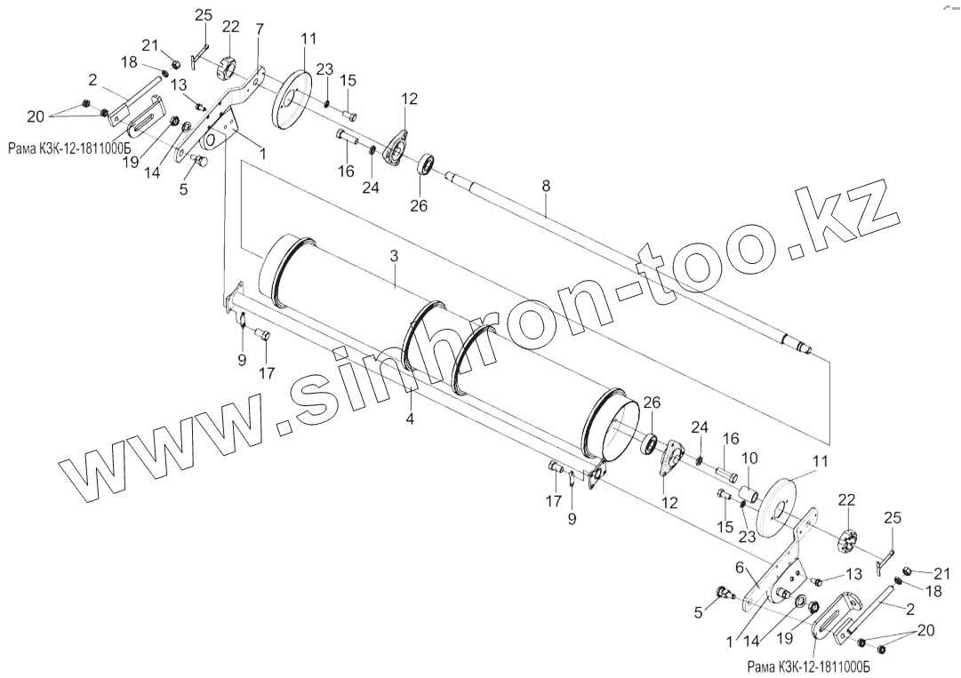 Каталог запасных частей к технике: Гомсельмаш КЗС-1218 часть 1. Установка вала нижнего КЗК-12-1816000Б