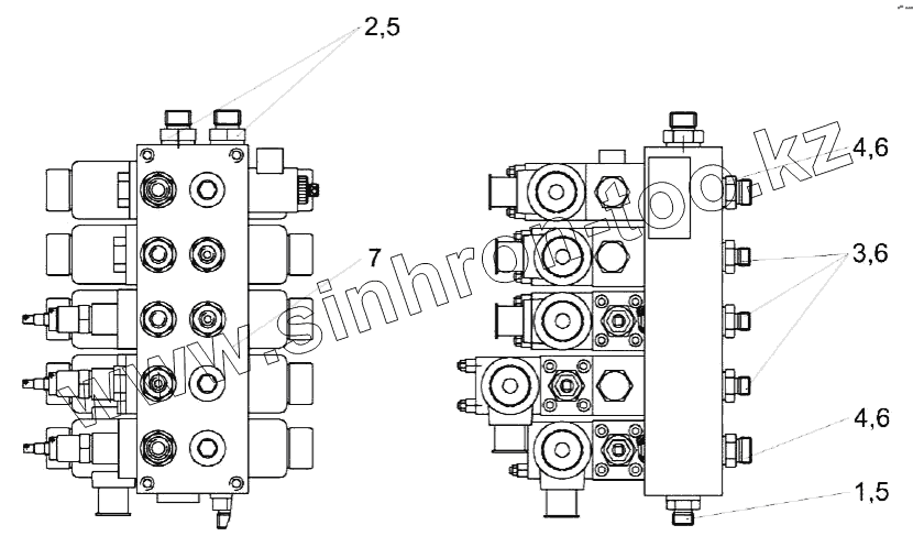 Каталог запасных частей к технике: Гомсельмаш КЗС-1218А-1. Гидроблок пятисекционный КЗК-12А-1-0602330