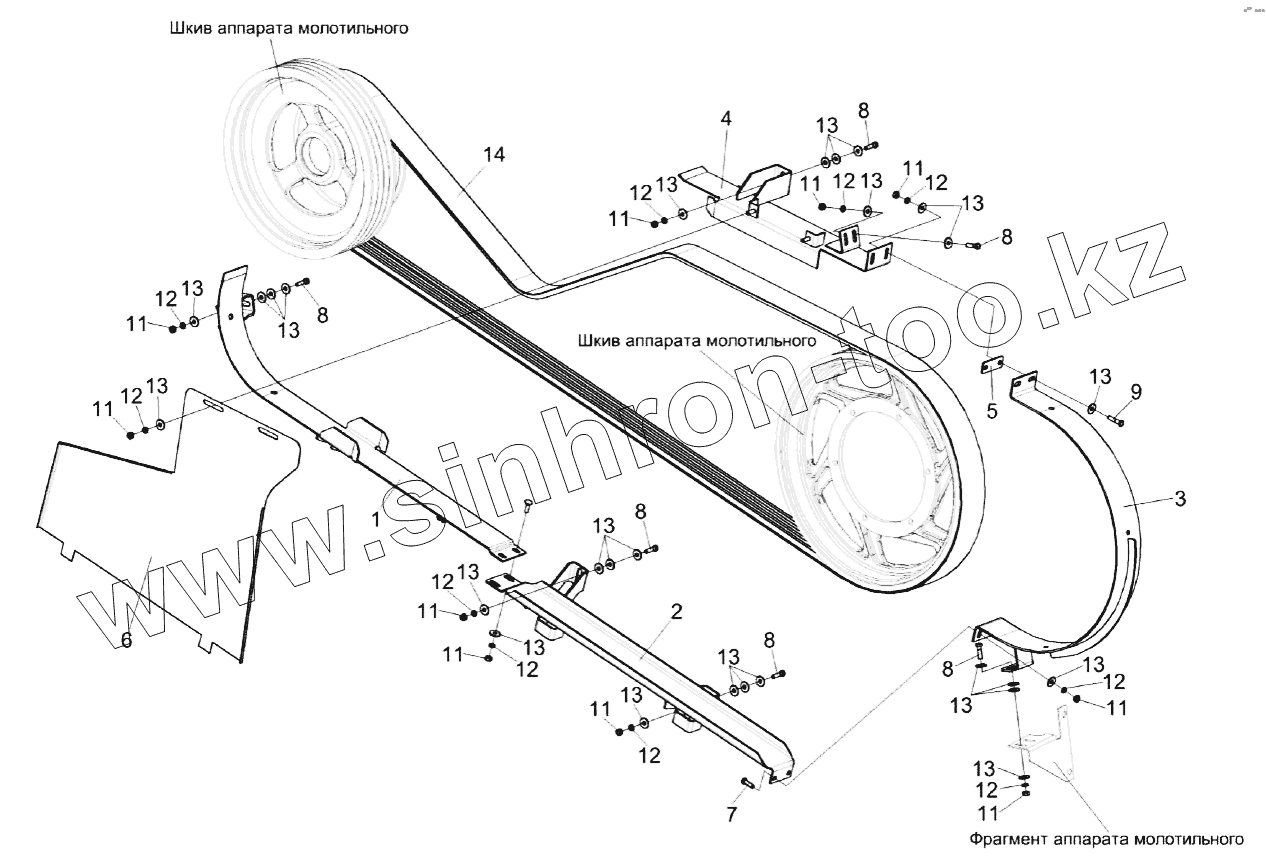Каталог запасных частей к технике: Гомсельмаш КЗС-1218А-1. Привод наклонной камеры КЗК-12А-1-0125000