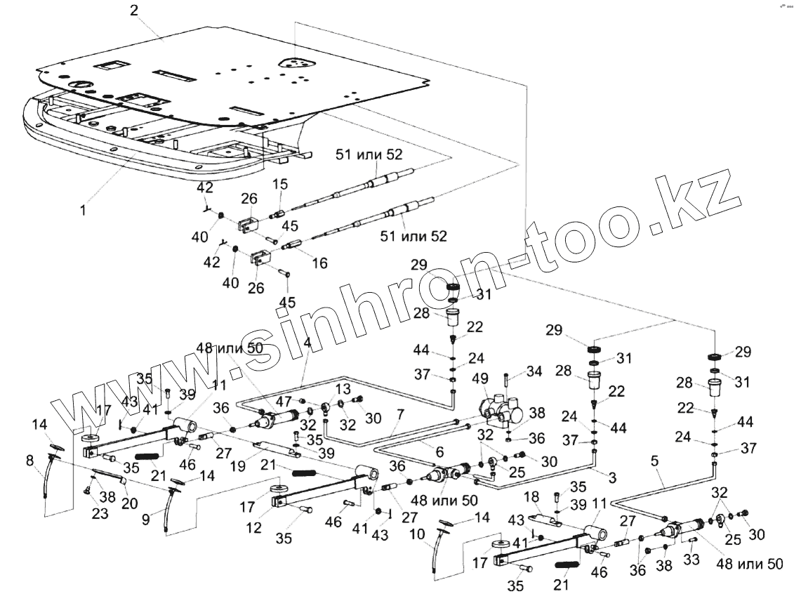 Каталог запасных частей к технике: Гомсельмаш КЗС-1218А-1. Рычаги и трубопроводы площадки управления