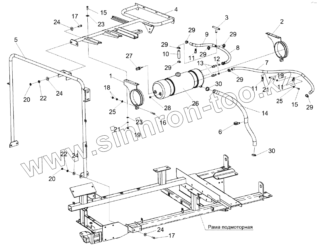 Каталог запасных частей к технике: Гомсельмаш КЗС-1218А-1. Установка бачка расширительного КЗК-12-3-0106070А