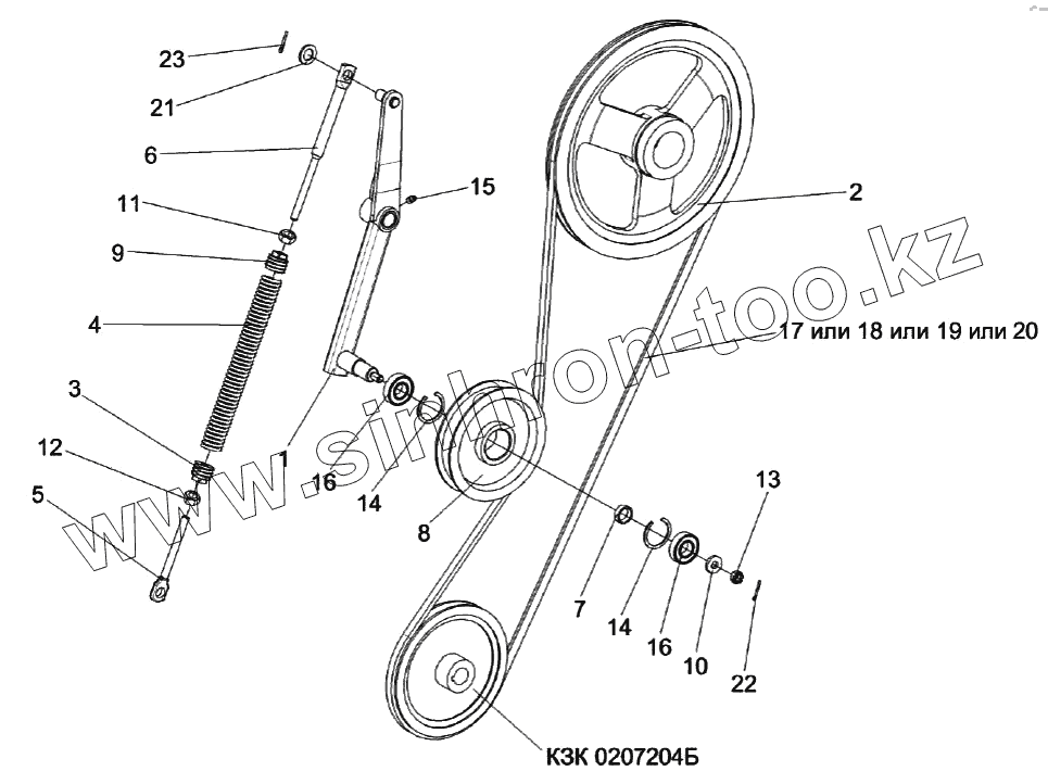 Каталог запасных частей к технике: Гомсельмаш КЗС-1218А-1. Установка привода устройства домолачивающего