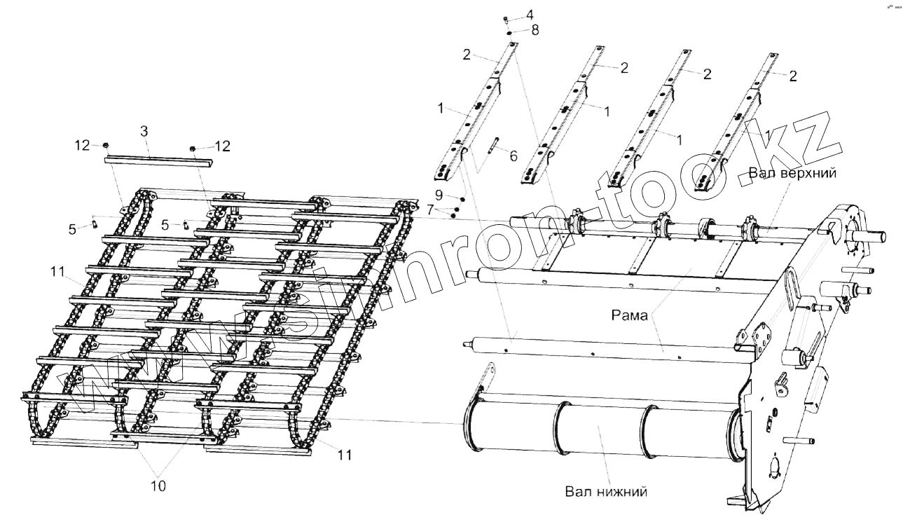 Каталог запасных частей к технике: Гомсельмаш КЗС-1218А-1. Установка транспортера КЗК-12-1817000В
