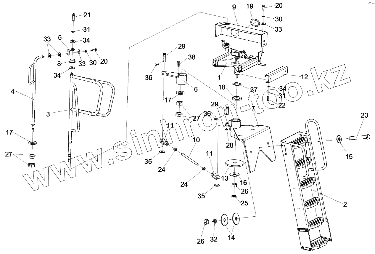 Каталог запасных частей к технике: Гомсельмаш КЗС-1218А-1. Установка трапа КЗК-12-0117000А
