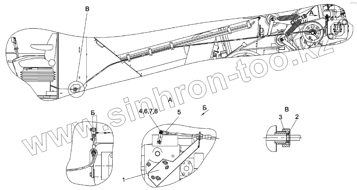 Каталог запасных частей к технике: Гомсельмаш КЗС-1218А-1. Установка троса ГСТ КЗК-12-0119620В