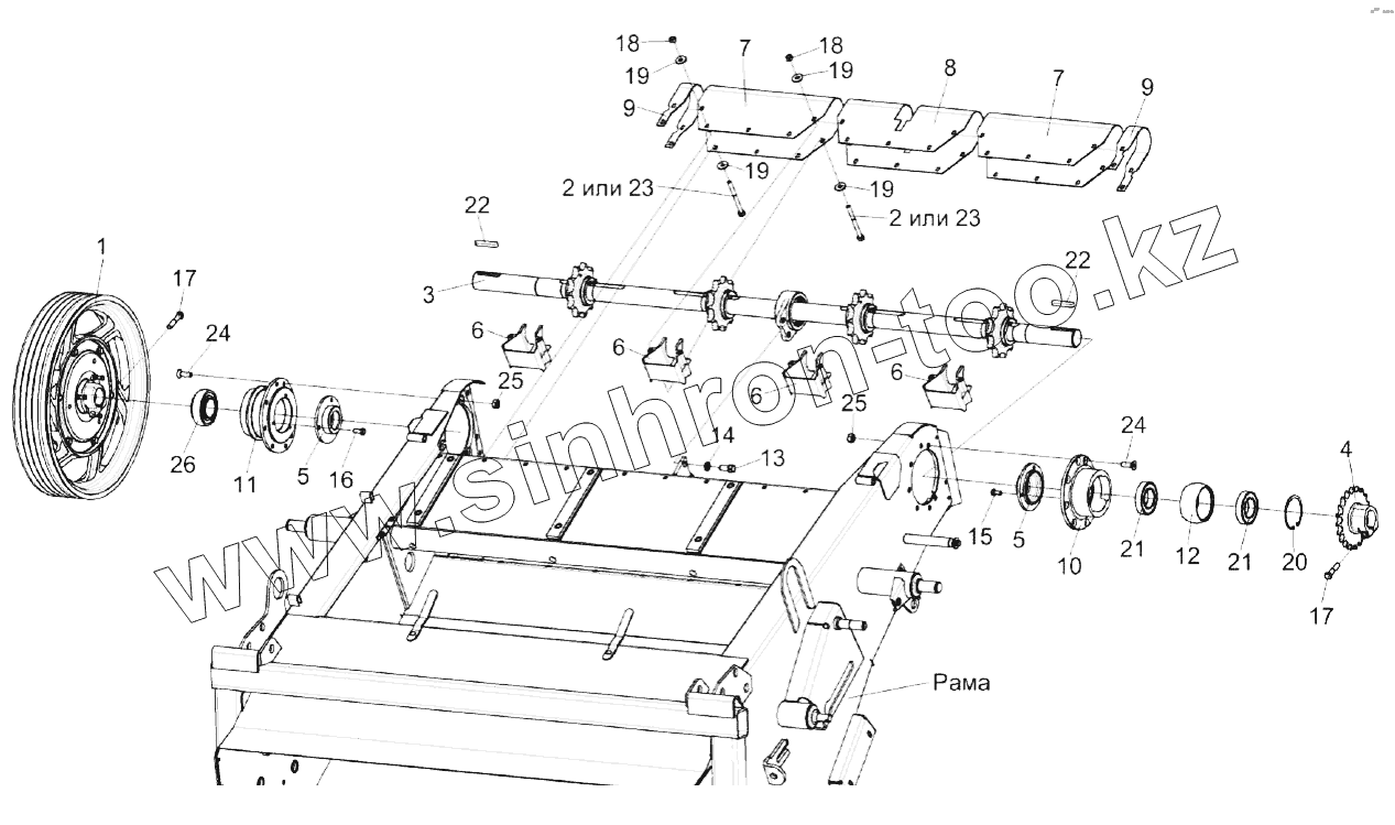 Каталог запасных частей к технике: Гомсельмаш КЗС-1218А-1. Установка вала верхнего КЗК-12-1813000Б