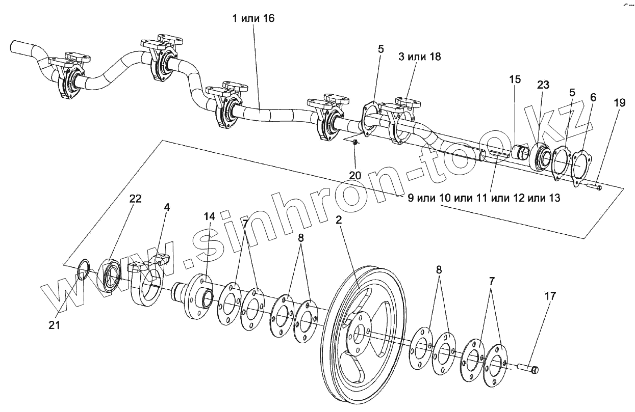 Каталог запасных частей к технике: Гомсельмаш КЗС-1218А-1. Вал коленчатый ведущий КЗК-12-0212070