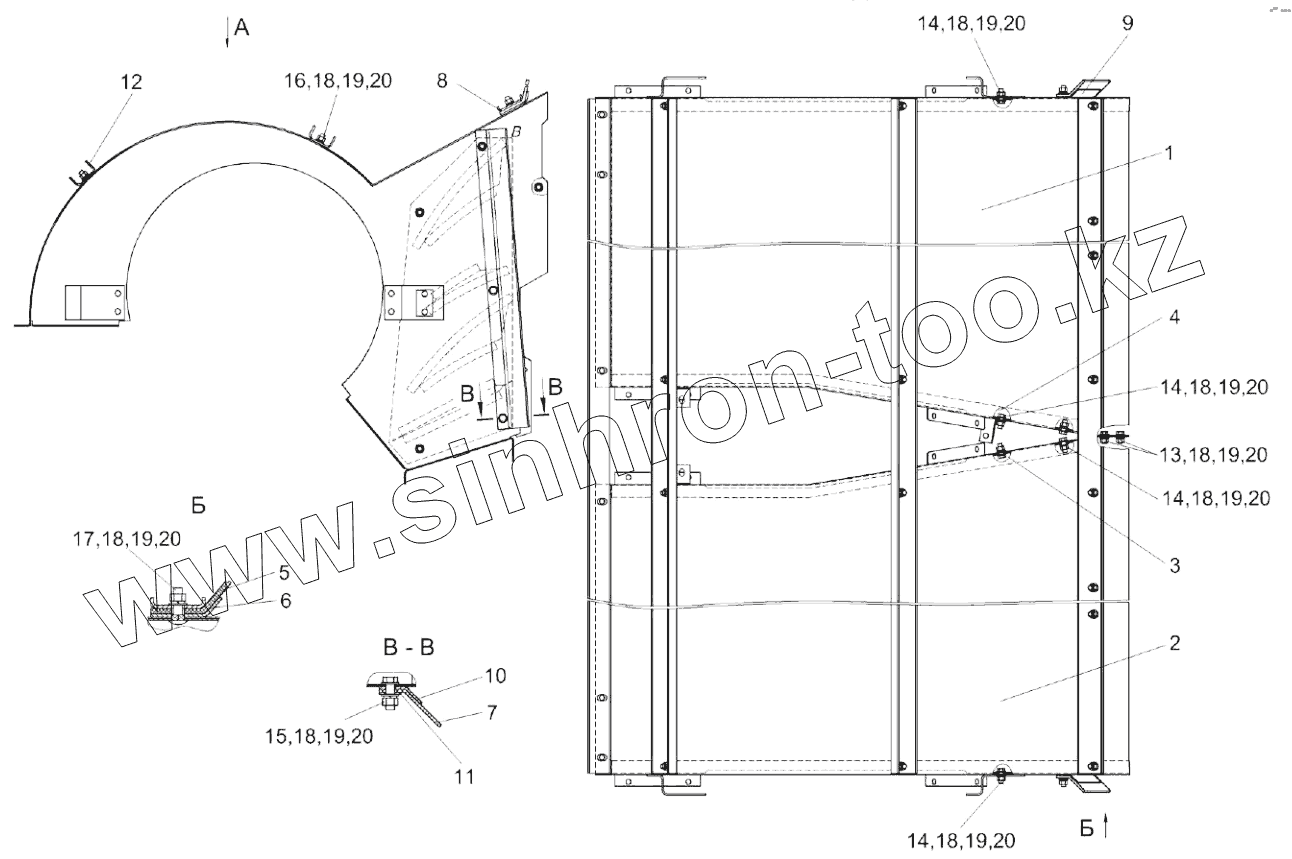 Каталог запасных частей к технике: Гомсельмаш КЗС-1218А-1. Кожух сдвоенный КЗК-10-0217100