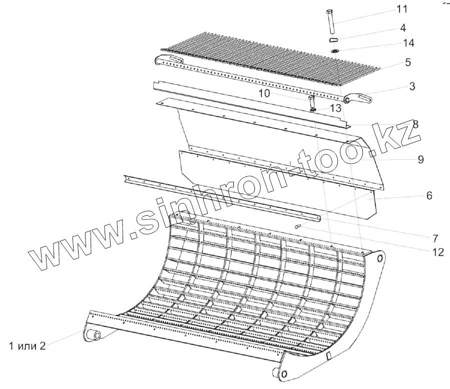 Каталог запасных частей к технике: Гомсельмаш КЗС-1218А-1. Подбарабанье КЗК-12-0103000