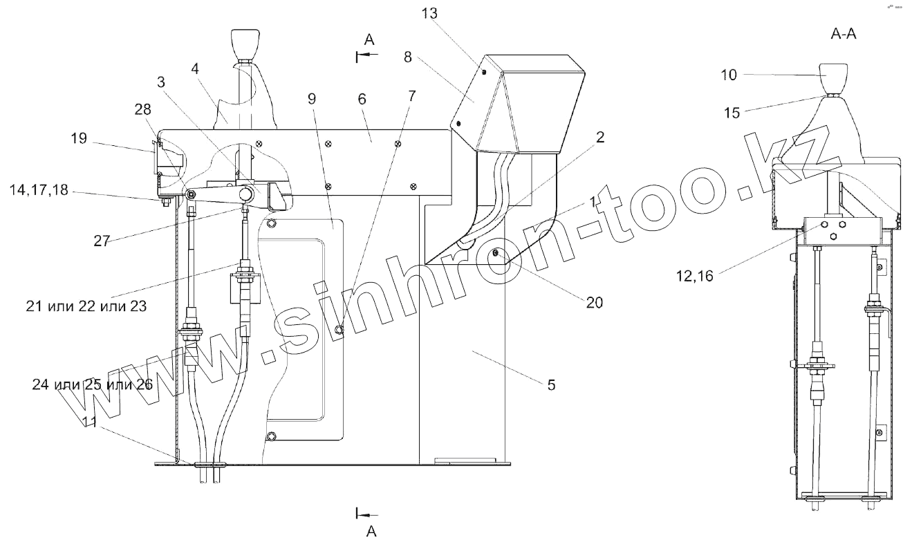 Пневмосистема КЗК-12А-10-1-0800000 (вид справа)