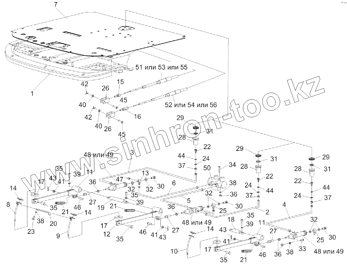 Каталог запасных частей к технике: Гомсельмаш КЗС-1218А-1. Рычаги и трубопроводы площадки управления