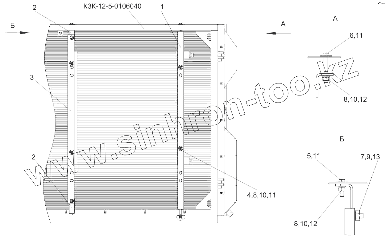 Каталог запасных частей к технике: Гомсельмаш КЗС-1218А-1. Установка конденсатора КЗК-12-4-0113060