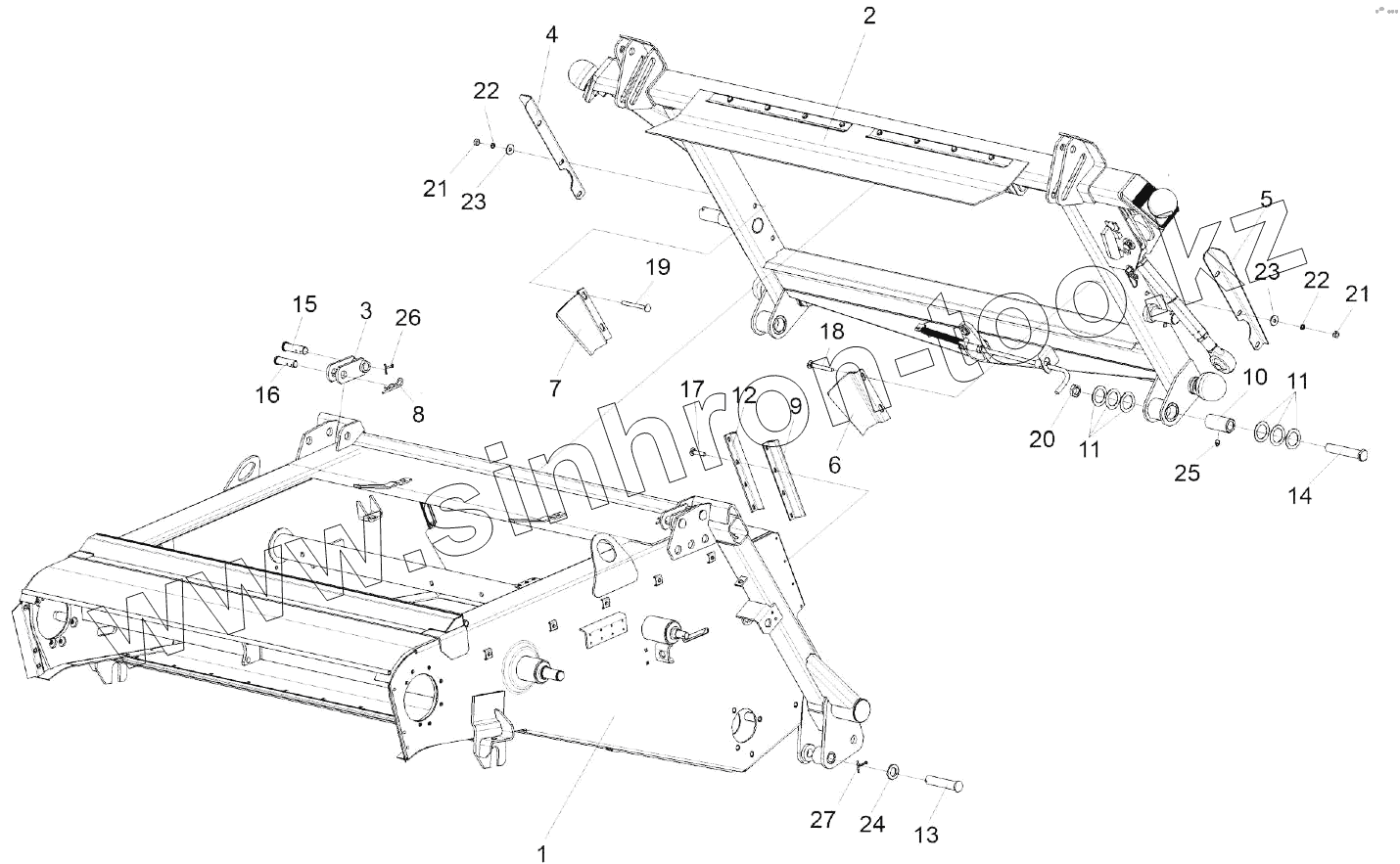 Каталог запасных частей к технике: Гомсельмаш КЗС-1218А-1. Установка рамки переходной КЗК-12А-1-1808000