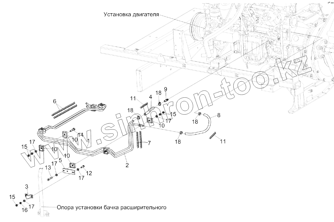 Каталог запасных частей к технике: Гомсельмаш КЗС-1218А-1. Установка топливопроводов КЗК-12А-10-1-0126100