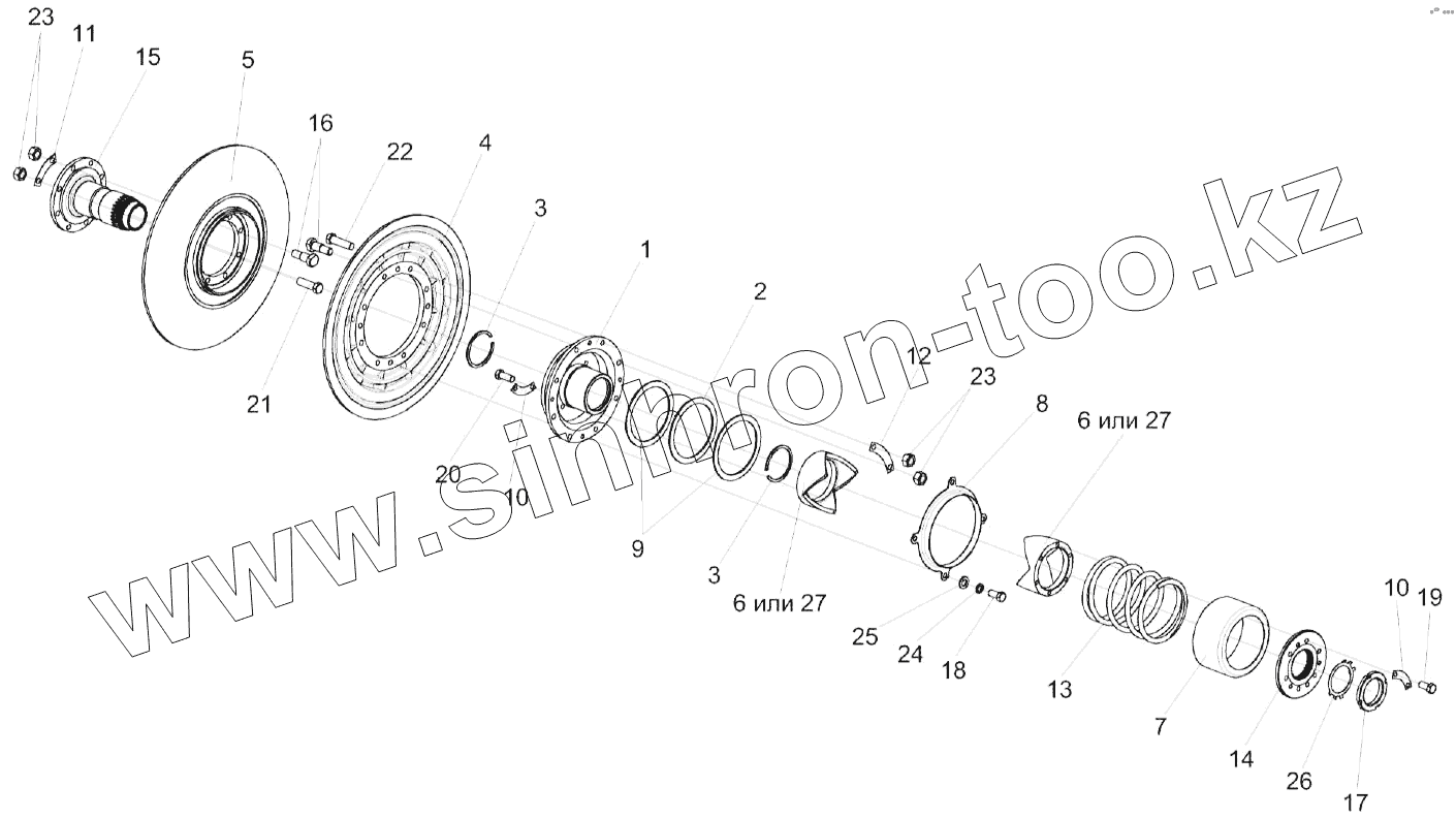 Пневмосистема КЗК-12А-10-1-0800000 (вид слева)