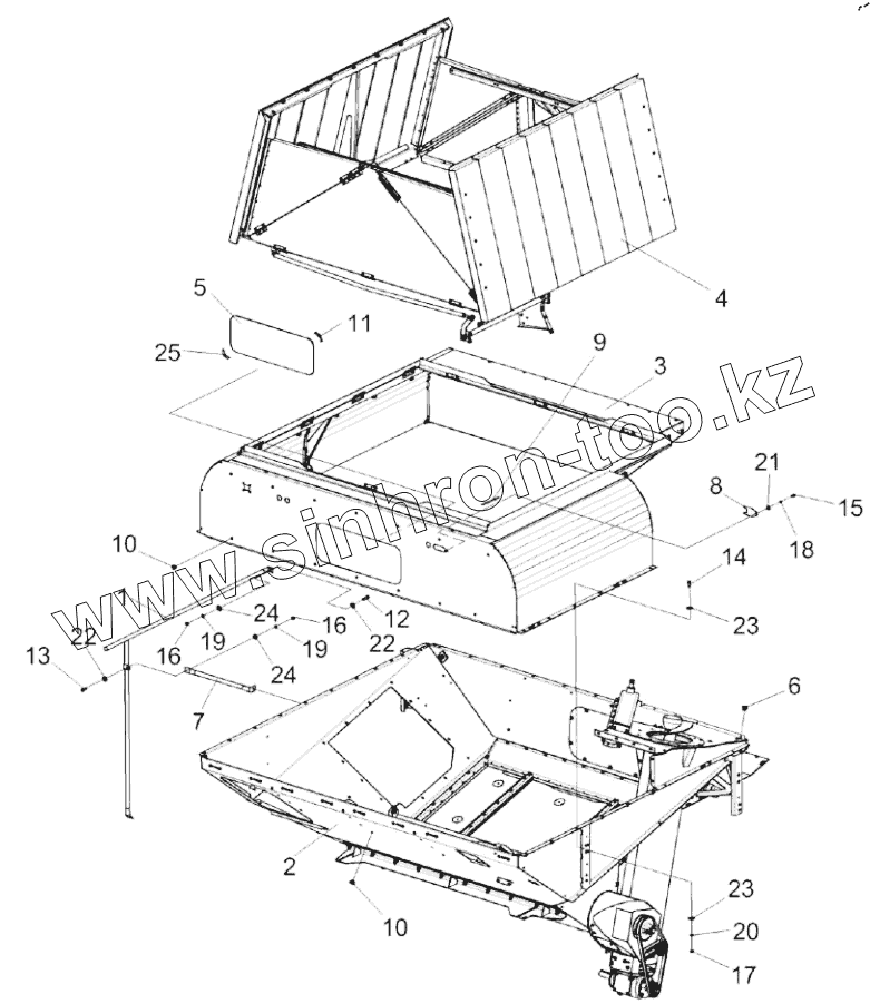 Каталог запасных частей к технике: Гомсельмаш КЗС-1218А-1. Бункер КЗК-12А-1-0203000-01