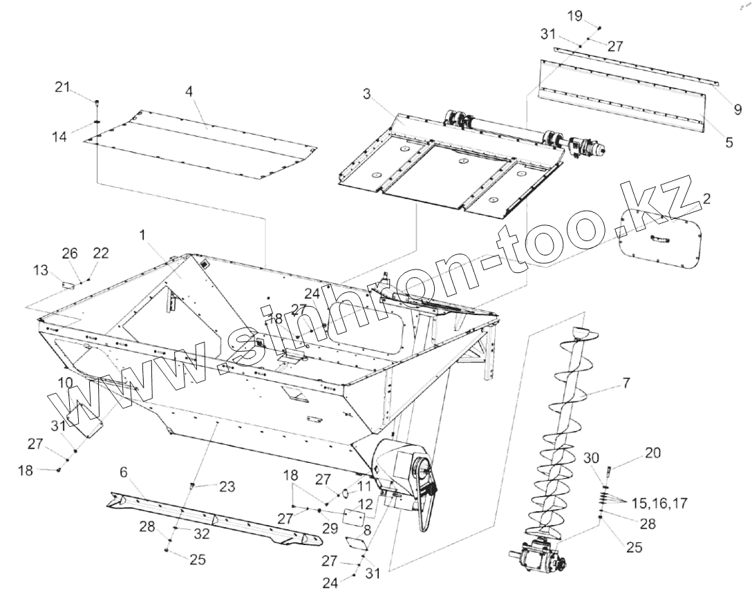 Каталог запасных частей к технике: Гомсельмаш КЗС-1218А-1. Бункер КЗК-12А-1-0203000-01
