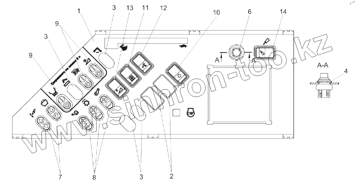 Каталог запасных частей к технике: Гомсельмаш КЗС-1218А-1. Панель выключателей КЗК-12А-1-0700450Б