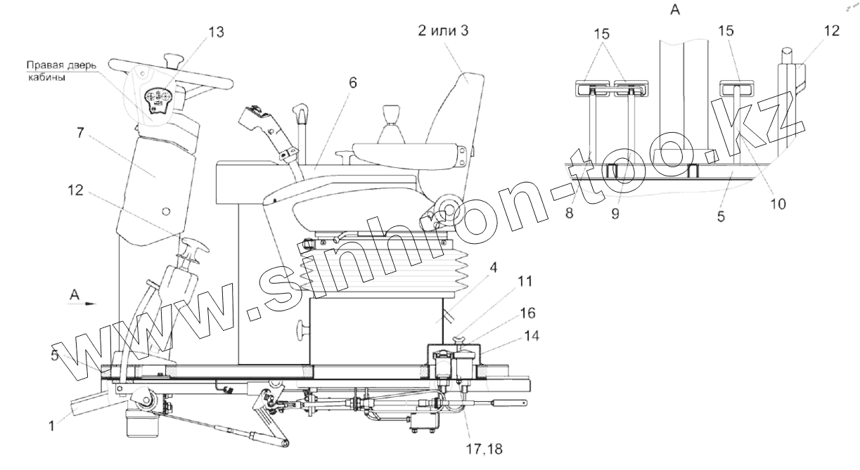Каталог запасных частей к технике: Гомсельмаш КЗС-1218А-1. Площадка управления КЗК-12А-1-0119000А