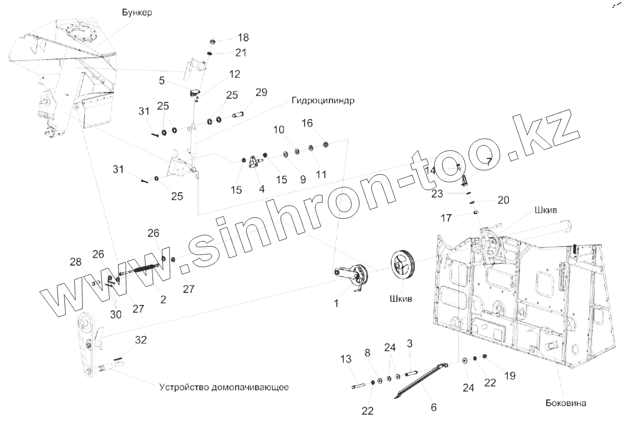 Каталог запасных частей к технике: Гомсельмаш КЗС-1218А-1. Привод выгрузки КЗК-12А-1-0221100