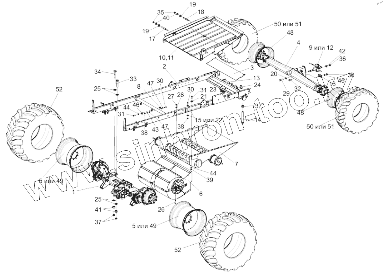 Каталог запасных частей к технике: Гомсельмаш КЗС-1218А-1. Шасси КЗК-12-0111000В
