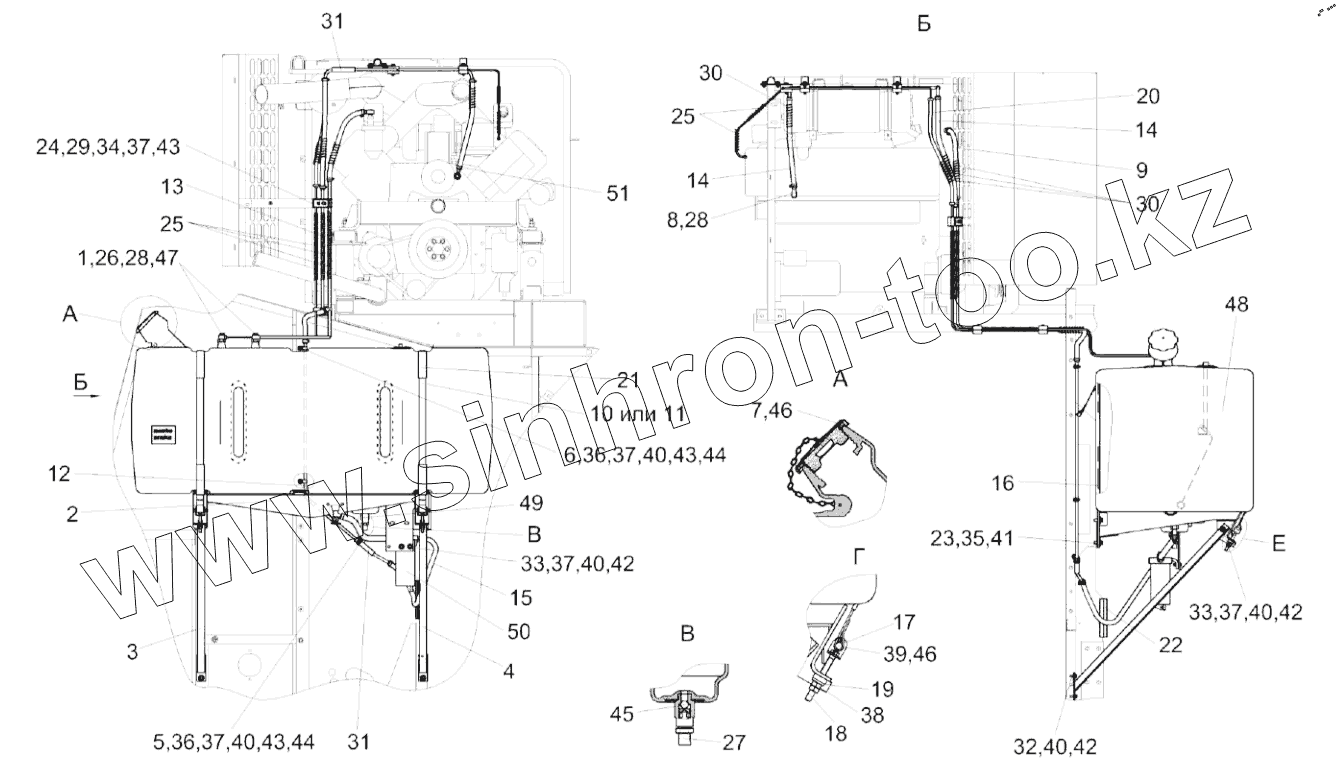Каталог запасных частей к технике: Гомсельмаш КЗС-1218А-1. Установка бака топливного КЗК-12-0126600
