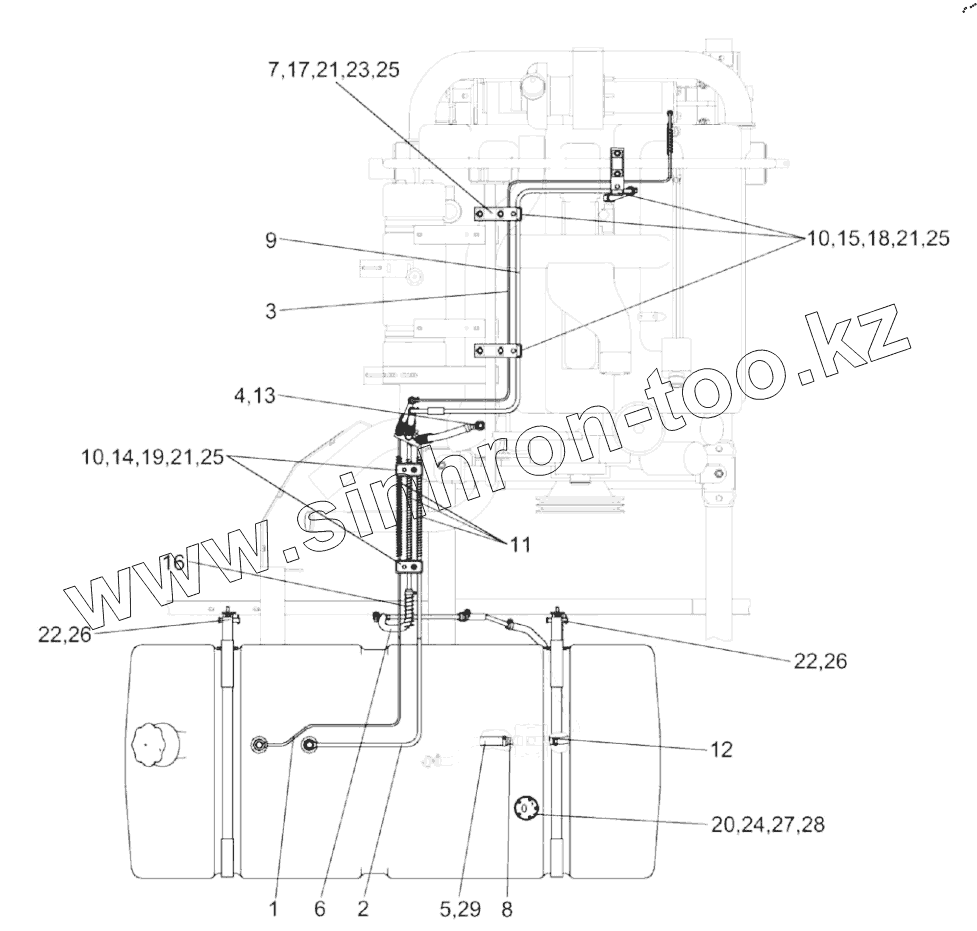 Каталог запасных частей к технике: Гомсельмаш КЗС-1218А-1. Установка бака топливного КЗК-12-0126600