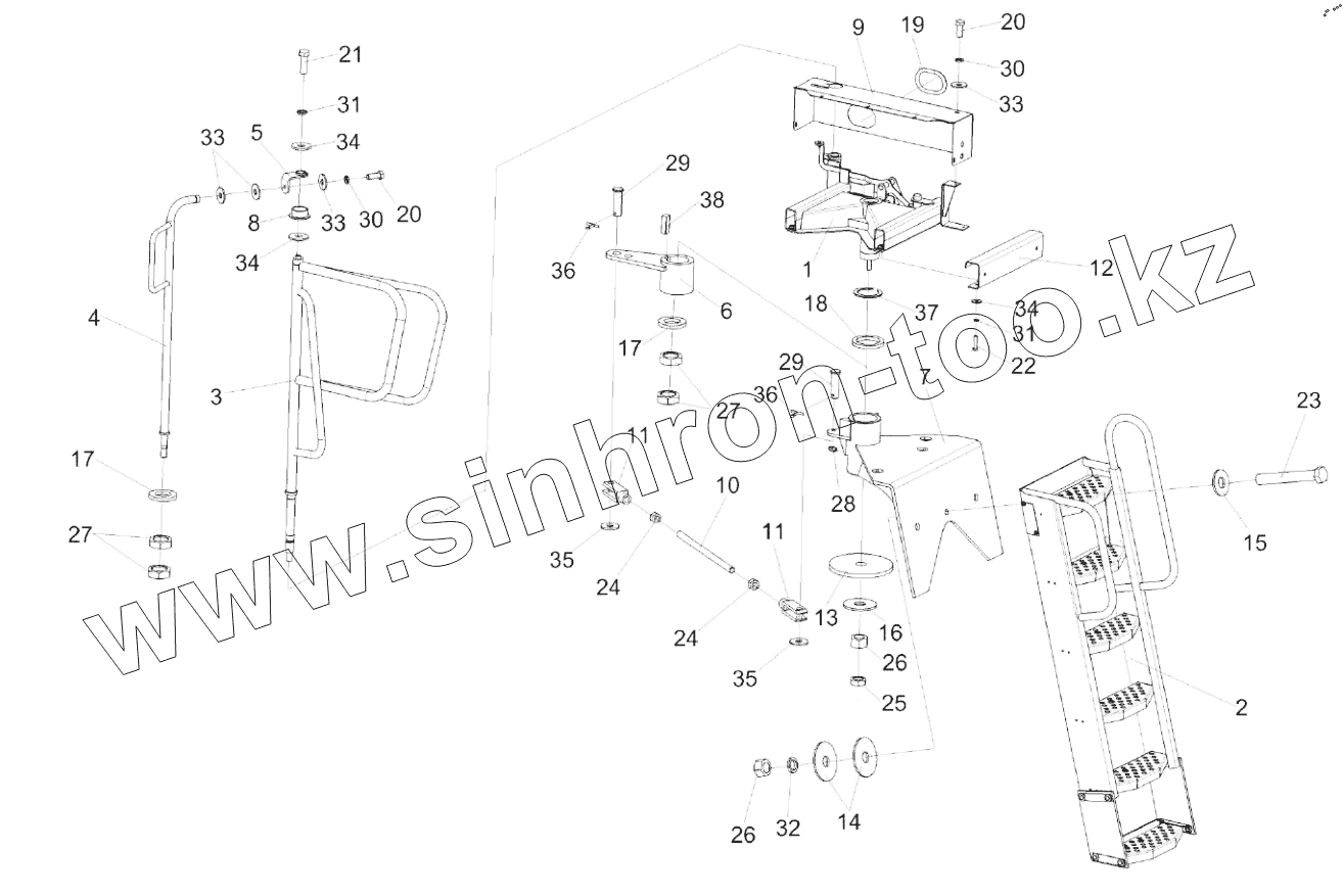 Каталог запасных частей к технике: Гомсельмаш КЗС-1218А-1. Установка трапа КЗК-12-0117000А