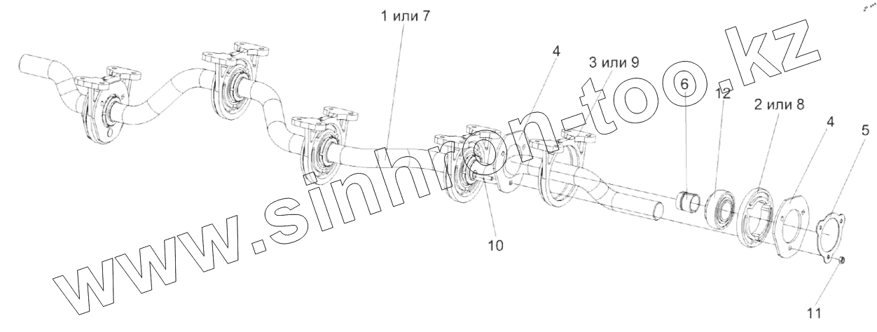 Каталог запасных частей к технике: Гомсельмаш КЗС-1218А-1. Вал коленчатый ведомый КЗК-12-0212080