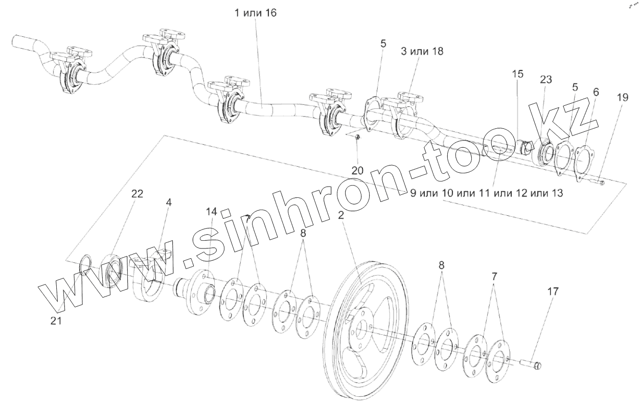 Каталог запасных частей к технике: Гомсельмаш КЗС-1218А-1. Вал коленчатый ведущий КЗК-12-0212070