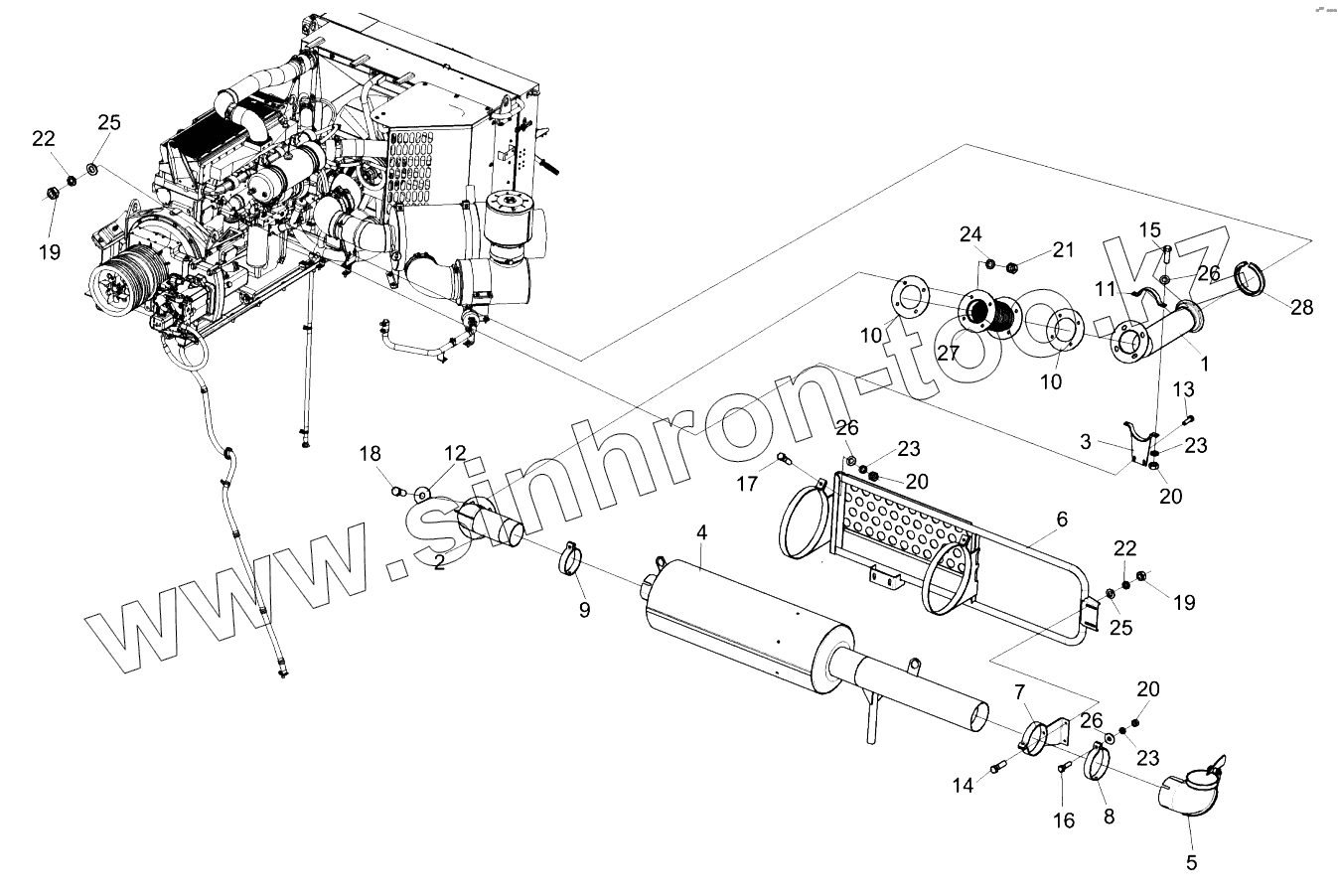 Каталог запасных частей к технике: Гомсельмаш КЗС-1420 часть 1. Установка глушителя КЗК-1420-0106060