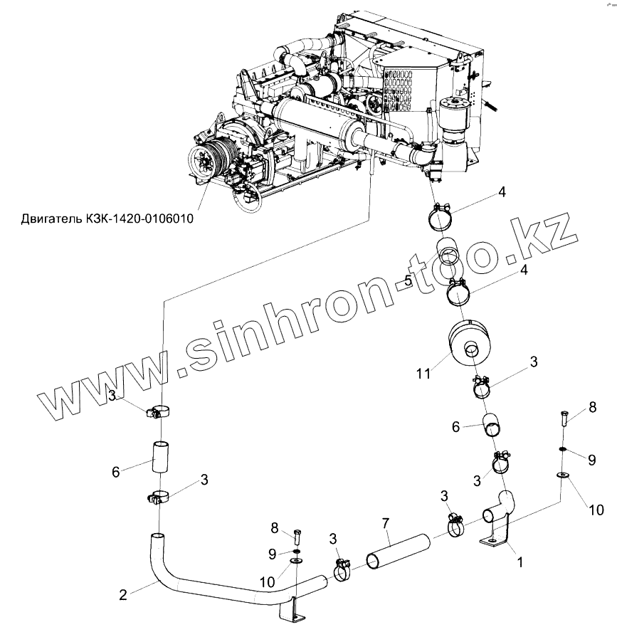 Каталог запасных частей к технике: Гомсельмаш КЗС-1420 часть 1. Установка клапана предохранительного КЗК-1420-0106310