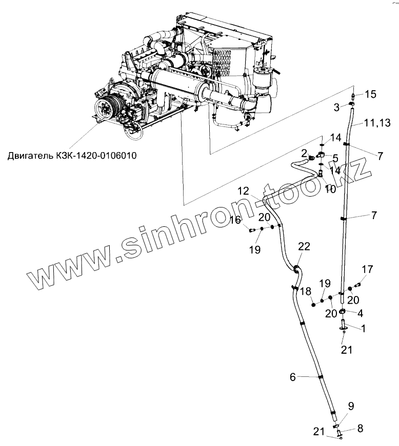 Каталог запасных частей к технике: Гомсельмаш КЗС-1420 часть 1. Установка сливных рукавов КЗК-1420-0106