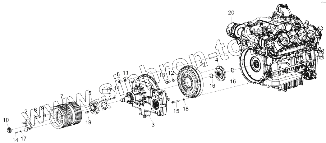 Каталог запасных частей к технике: Гомсельмаш КЗС-1624-1. Двигатель КЗК-16-1-0106010