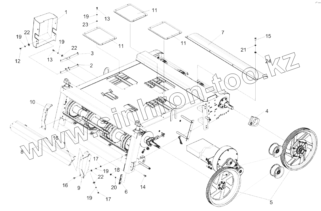 Схема приводов комбайна КЗС-1624-1 (вид слева)